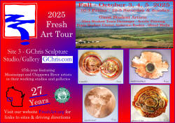 Thrive! ® abstract sculpture by GChris is mission-driven. Thrive! sculpture supports our creating and sustaining large, positive and timely change and building and achieving a thriving and surviving future for all forever. #ThrivingFuture Thrive! Website - ThrivingFuture.org Be Unselfish Website - Unselfish.world Thrive! Blog ThriveBlog.org Thrive! Thought & Sculpture Blog ThriveSculpture.com Thrive! sculpture is to be interacted with and gently touched. Some are copper, wood or both. Sizes range from a foot to dozen feet. Some make sounds when moved by wind or people; some remain silent. Some move physically; some move conceptually. All generate shadows, a second image. If you purchase a sculpture direct from GChris Studio/Gallery, prices are generally 50% of commercial gallery prices. For Studio direct sculpture prices, see list. GChris is Gary "Chris" Christopherson. GChris Studio/Gallery, formerly in Washington, DC area, is now in Nelson, WI in 1885 farmhouse, barn and beehouse on Mississippi River bluffside. You are welcome to visit the studio/gallery. Hours are informal. If you want be sure it is open for your visit, contact Chris by phone (301-318-3760) or email (GChris@GChris.com ). |